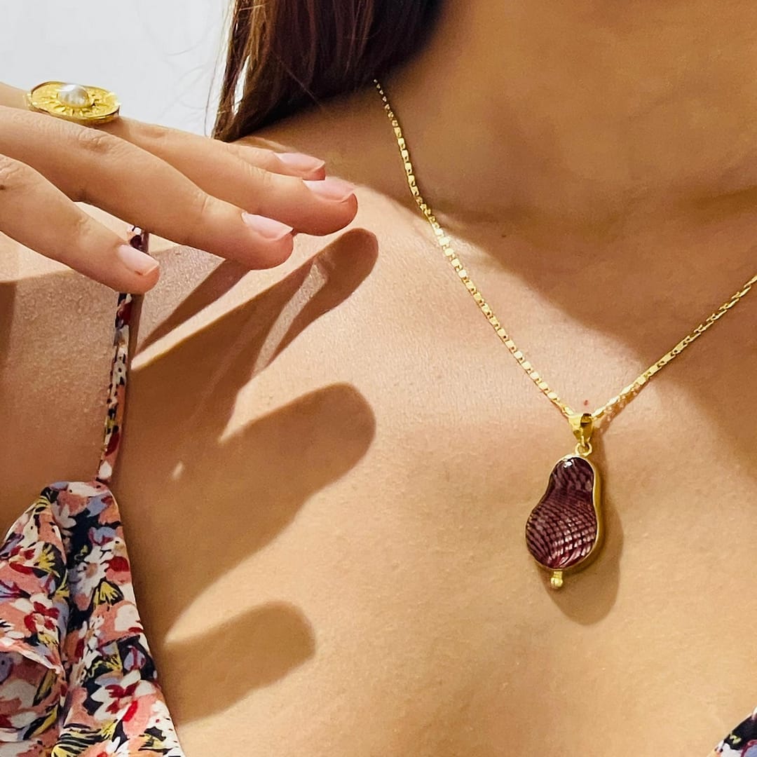 Takıda kullanılan zincir altın/gümüş kaplama pirinçtir.