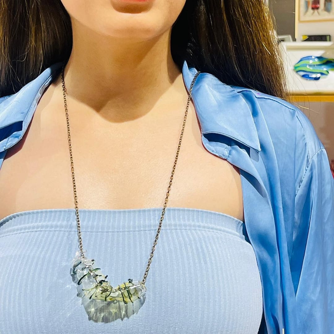 Takıda kullanılan zincir altın/gümüş kaplama pirinçtir.