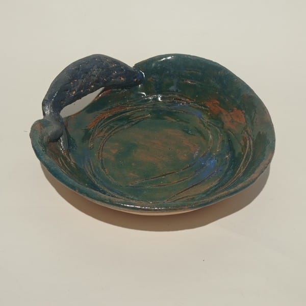 Koyu Yeşil Tonlarında Seramik Balıklı Tabak Çalışması (Çap: 22 cm)