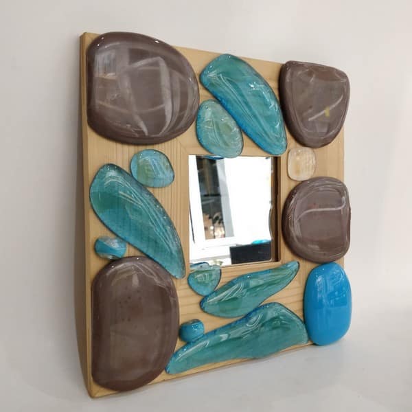 Füzyon Kabarçıklı Çakıllı Özel Ayna – 25×25 cm Yapay özel Çerçeveli – Ayna + Füzyon Tekniği
