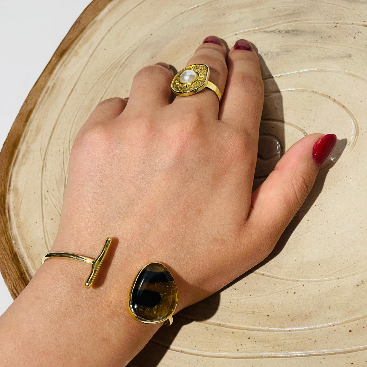 Metal aksamları tamamen pirinçtir. Pirinç üzeri çok özel üç kat altın kaplama yapılmıştır. Kaplama 3 yıla kadar renk ve canlılığını muhafaza eder. Sonrasında yeniden altın veya gümüş renginde kaplatarak yenileyebilirsiniz.