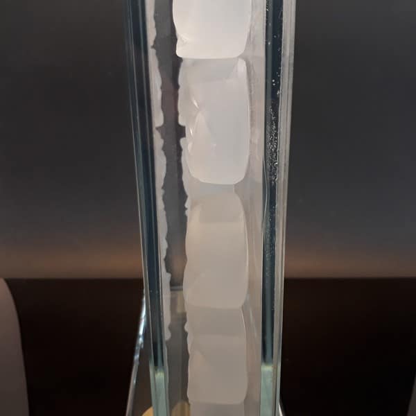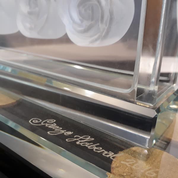 Sanatçımız Gamze Haberal tarafından İstanbul Beyoğlu’ndaki atölyesinde tasarlanmış ve yapılmış olan bu eserde Kalıpla Şekillendirme tekniği kullanılmıştır. Güllerin içinde bulunduğu yuva ve kaide de özel camdan imal edilmiştir.