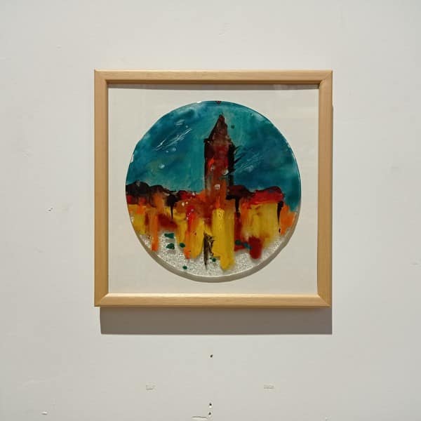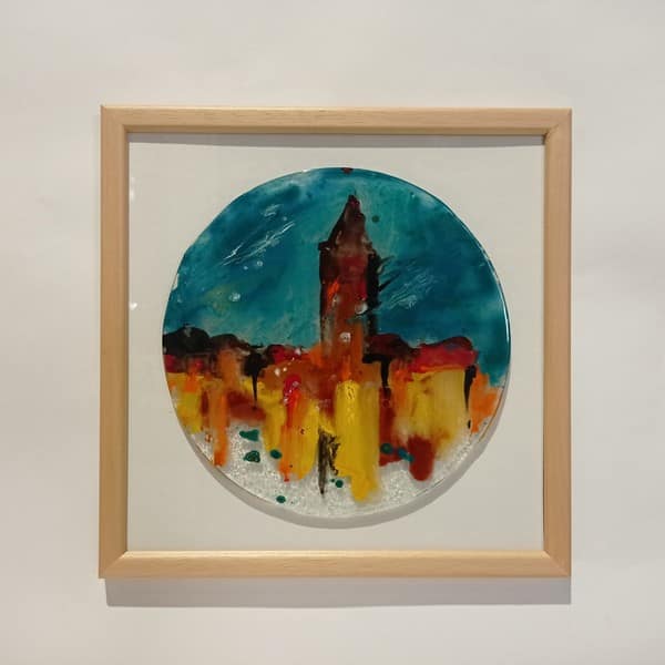 Galata ve Çevresi – 27×27 cm Ahşap Çerçeve – Cam Boyama Tekniği