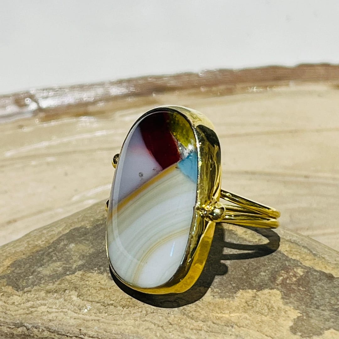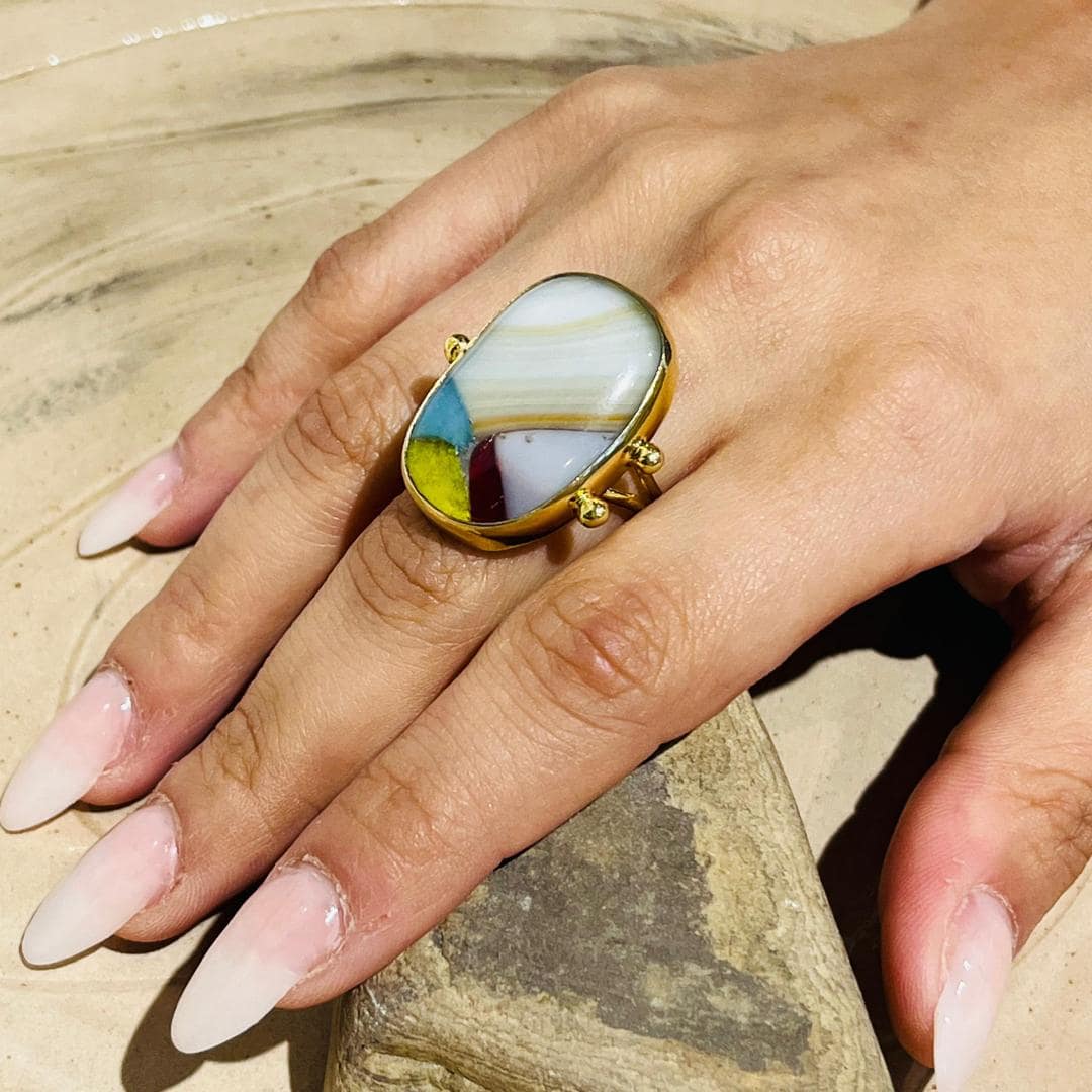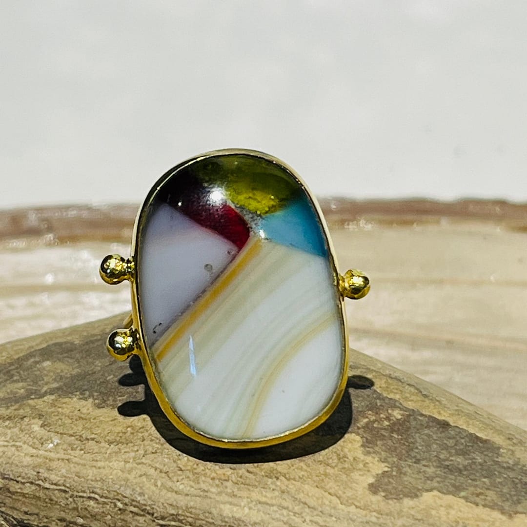 Geometrik Hareli Cam Tasarım Yüzük