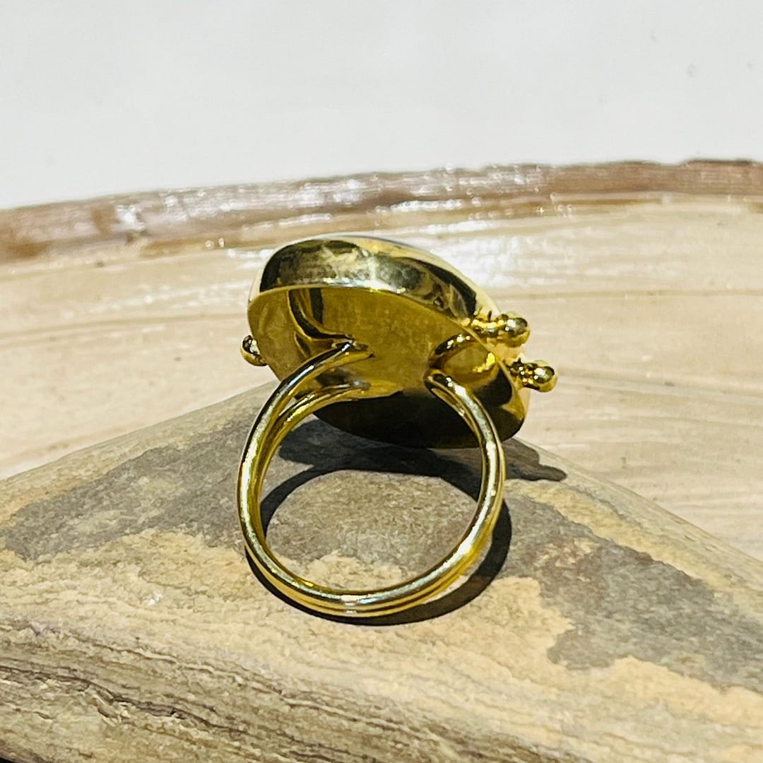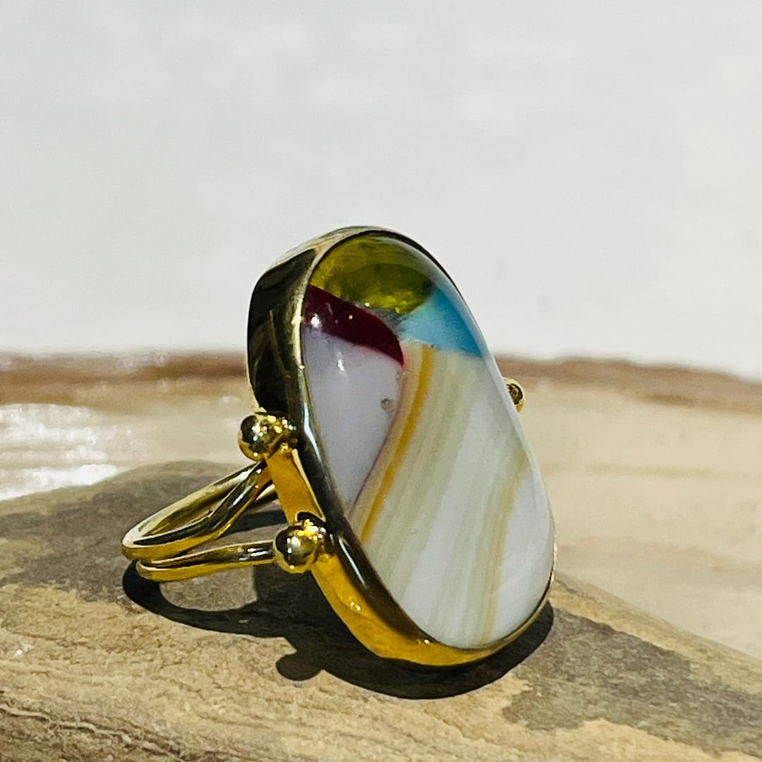 Pirinç üzeri altın kaplama tasarım  Cam Yüzük (20×30 mm)