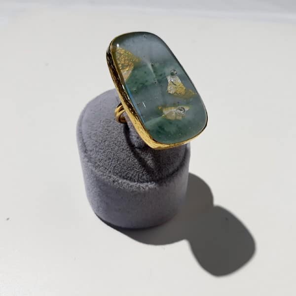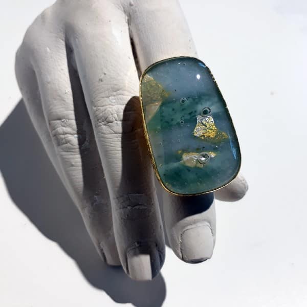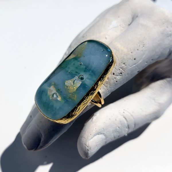 Sanatçımız Gamze Haberal tarafından İstanbul Beyoğlu’ndaki atölyesinde tasarlanmış ve yapılmıştır. El yapımı ve eşsiz olan bu eserde özel füzyon camları kullanılmıştır.
