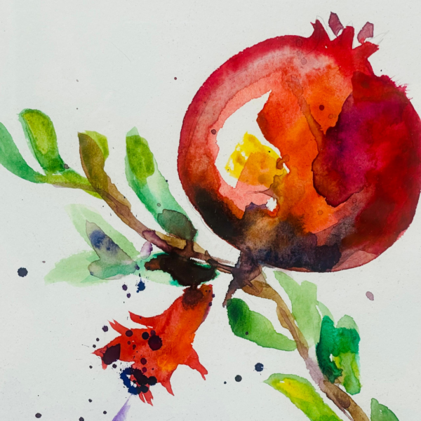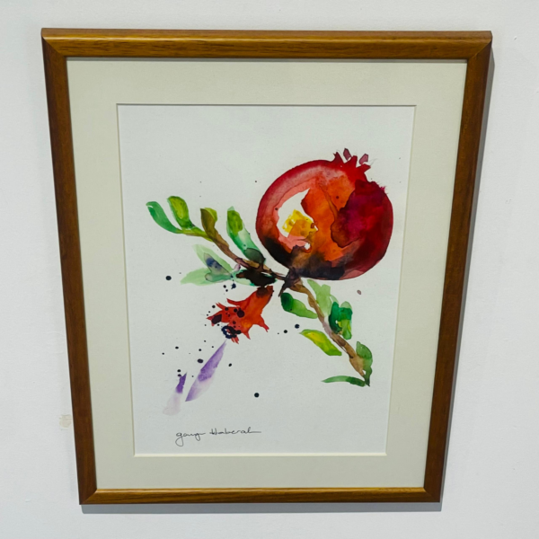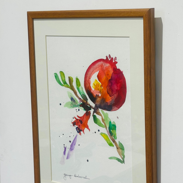 Suluboya İkili Nar ve dalları bereket ve zenginliği simgeleyen ahşap çerçeveli resim (28×36)