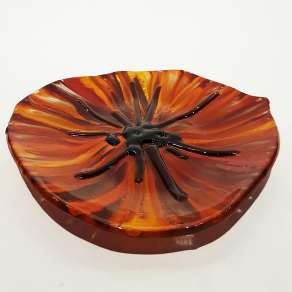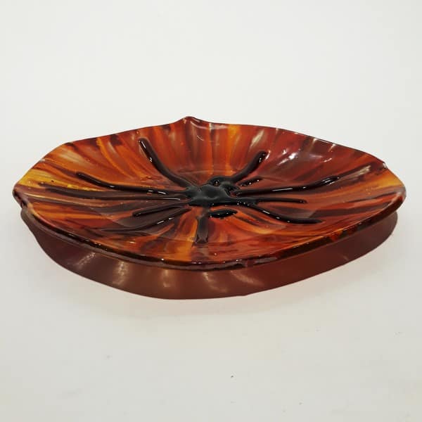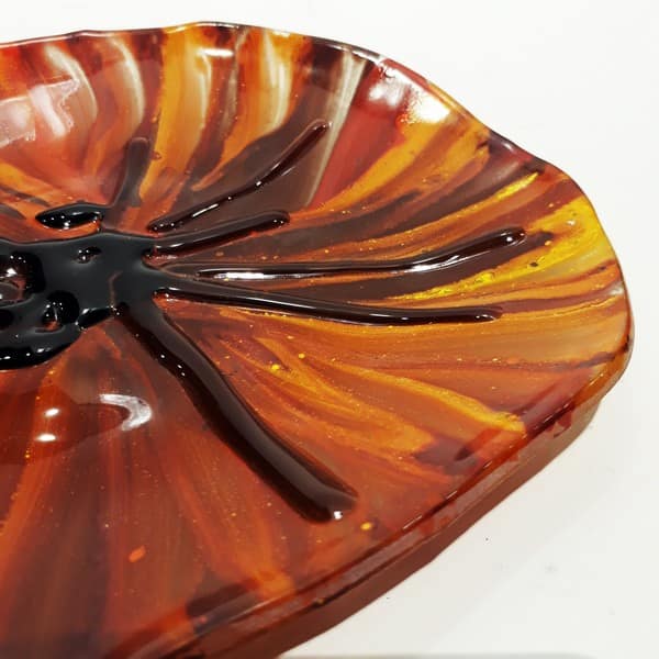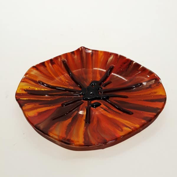 Cam Boyama + Füzyon Teknikleri ile yapılmış Kırmızı Sunum Tabağı (Çap:20 cm)