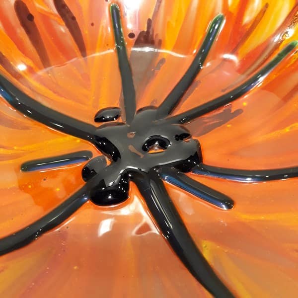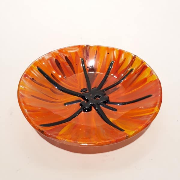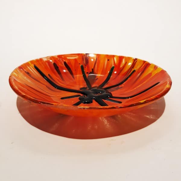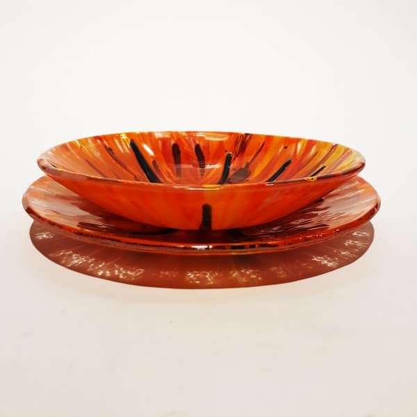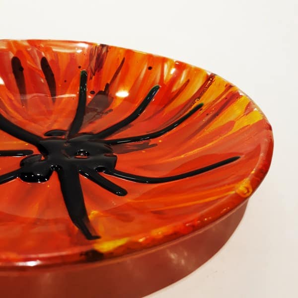 Cam Boyama + Füzyon Teknikleri ile yapılmış Kırmızı Sunum Tabağı (Çap:18 cm)