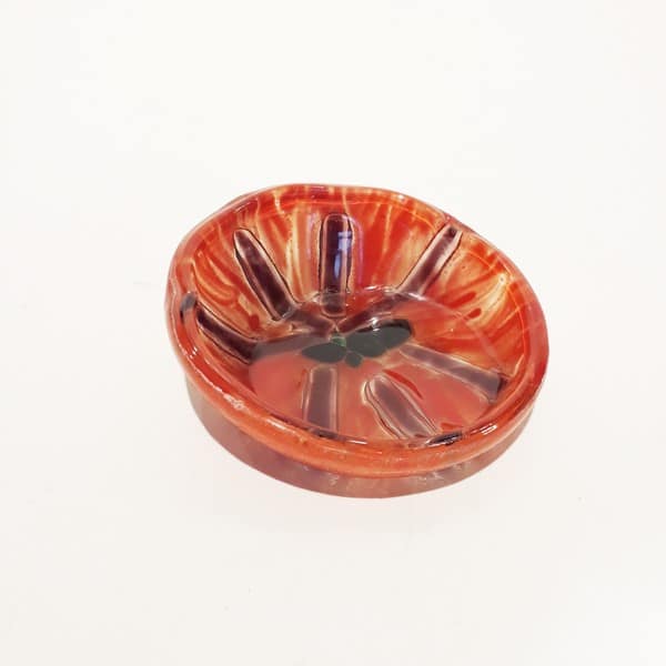 Cam Boyama + Füzyon Teknikleri ile yapılmış Kırmızı Cam Kase (Çap:9 cm)