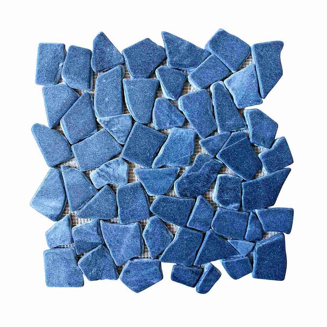 - 1 cm kalınlığında kesilen siyah mermer taşlar rastgele kırılmış ve özel tamburlarda honlanmıştır.