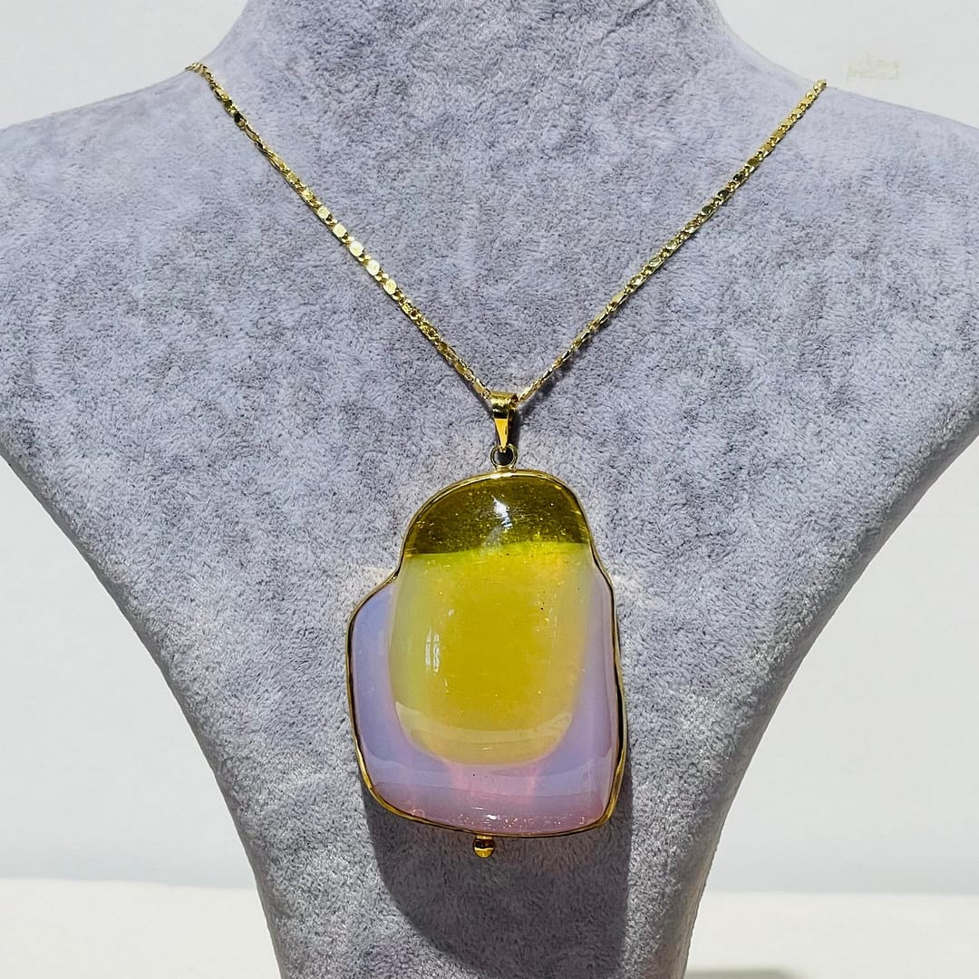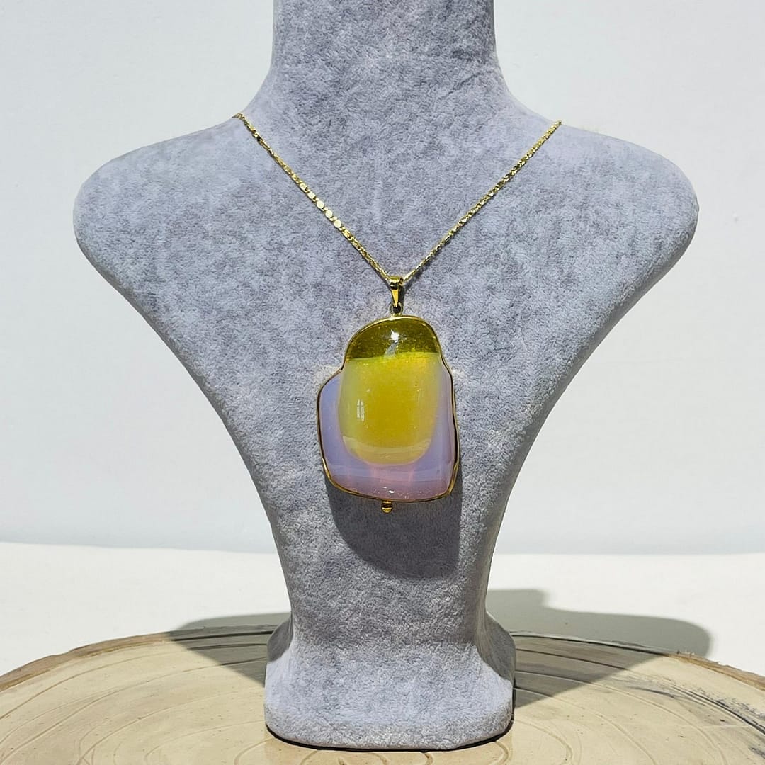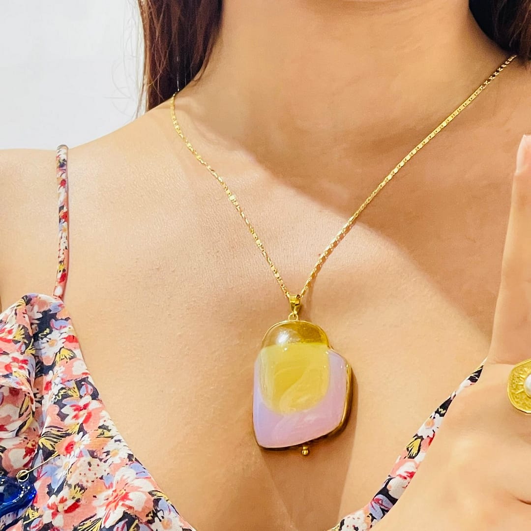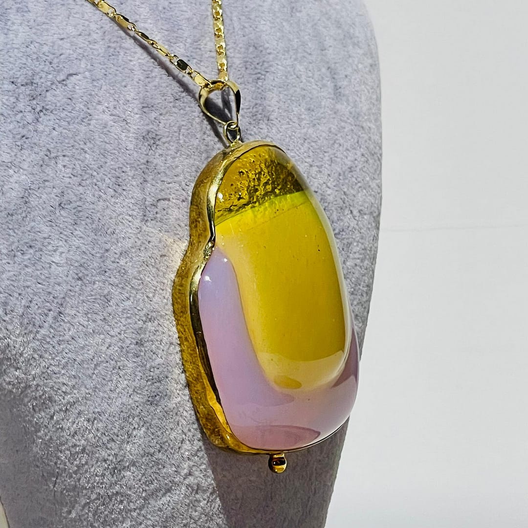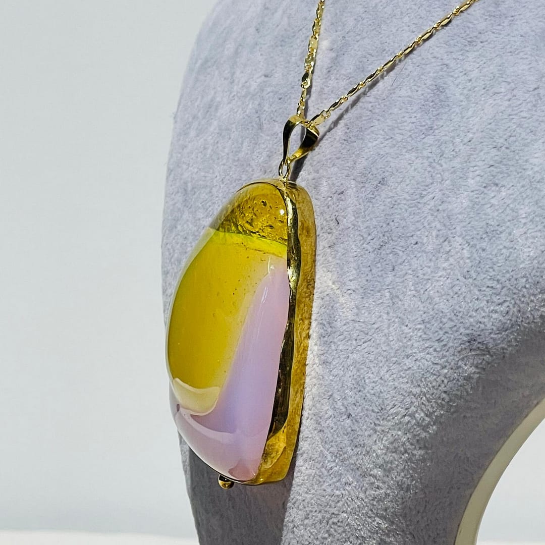 Pembe Sarı Amorf 3D Cam Kolye