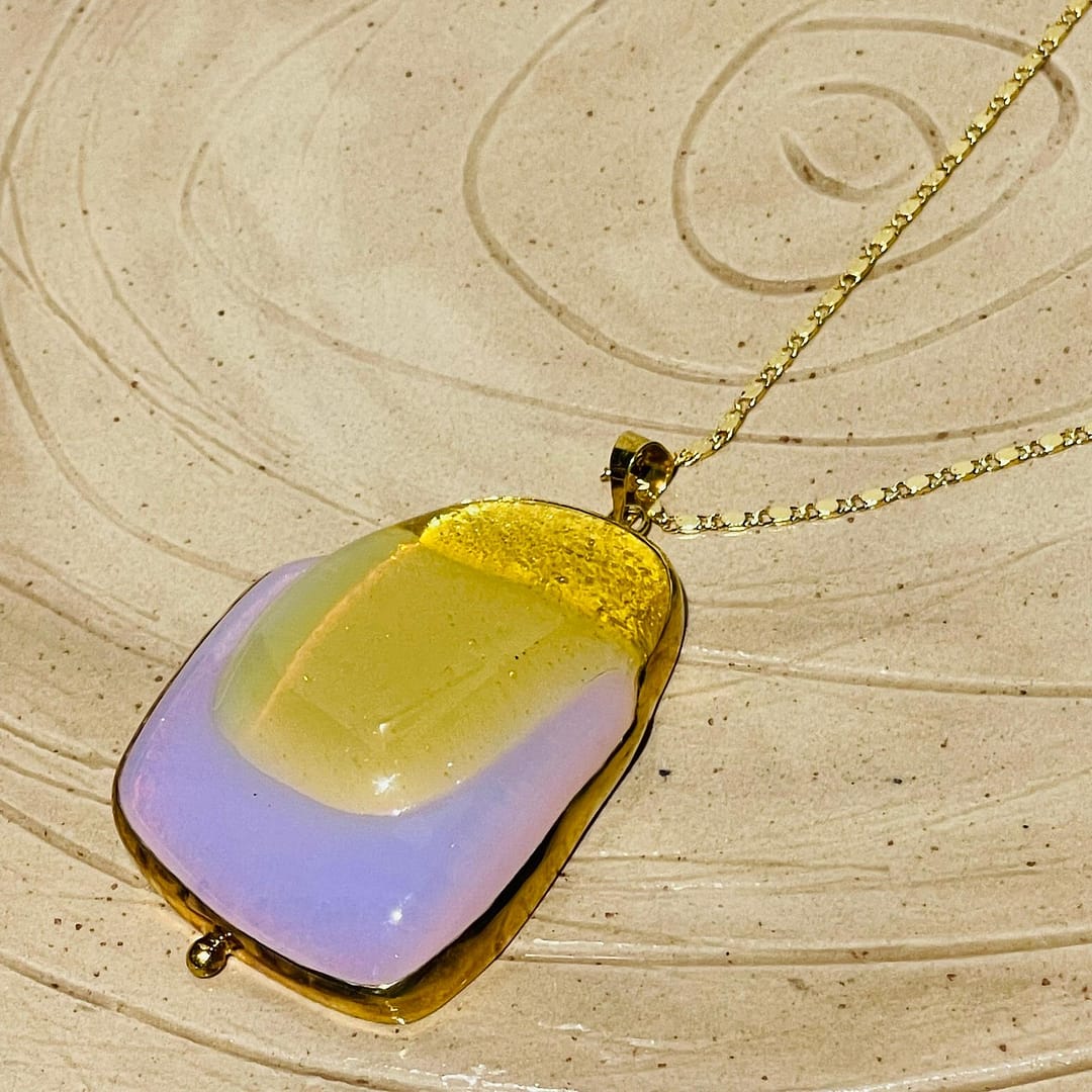 Pirinç Üzeri Altın Kaplama Elyapımı Tasarım Güverseli Cam Kolye (40×50 mm)