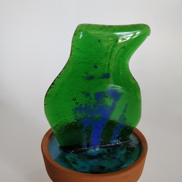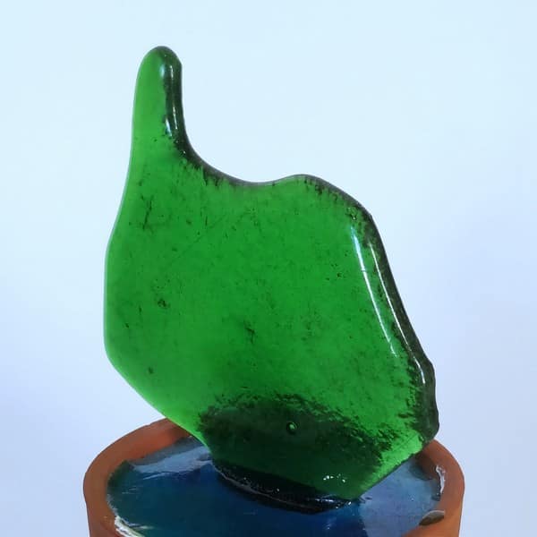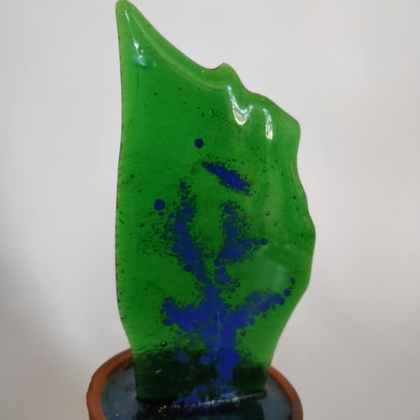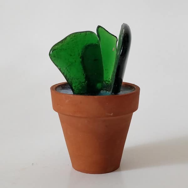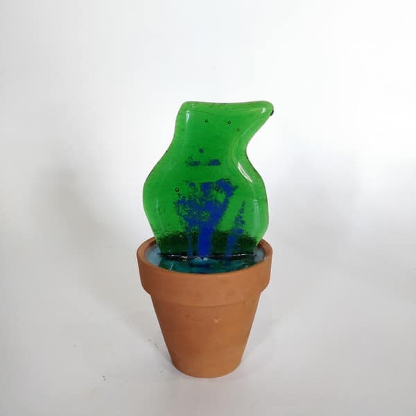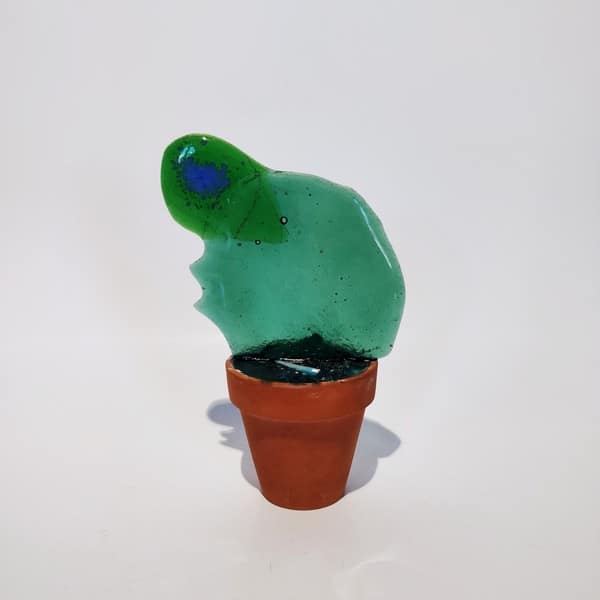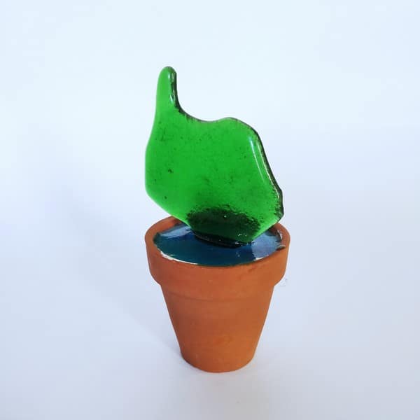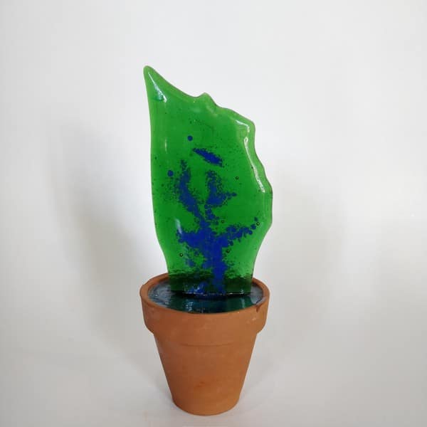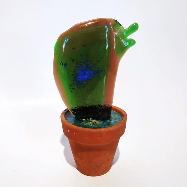 “Saksıda Kaktüs” temalı bu çalışma füzyon cam tekniği ile oluşturulmuş, kilden yapılmış özel saksına yine özel epoksi reçine ile sabitlenmiştir.