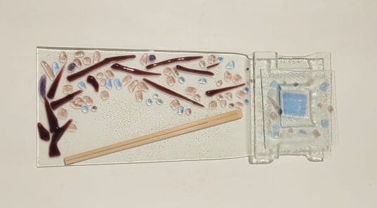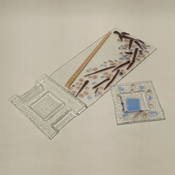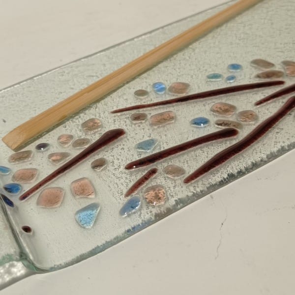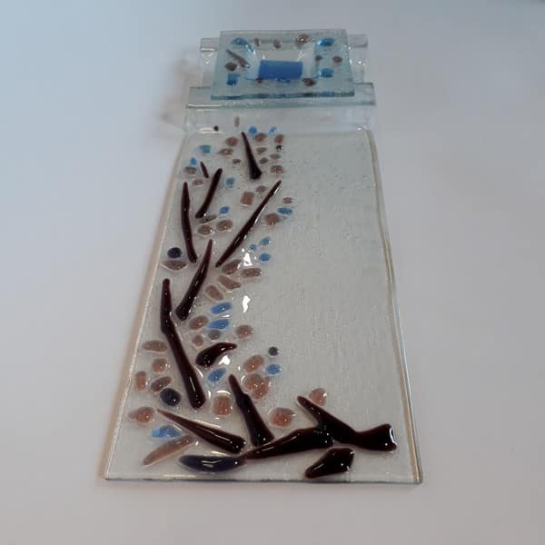 Kahve Mavi Renklerde Özel Tasarım Suşi Tabağı, Vasabi Sosluğu ile Birlikte (15×39 cm)