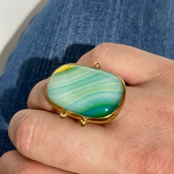 Sanatçımız Gamze Haberal tarafından İstanbul Beyoğlu’ndaki atölyesinde tasarlanmış ve yapılmıştır. El yapımı ve eşsiz olan bu eserde özel füzyon camları kullanılmıştır.