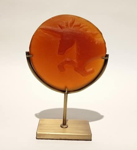 Metal aksamlar ve ayak pirinçtir. Eserin yüksekliği 22 cm dir.