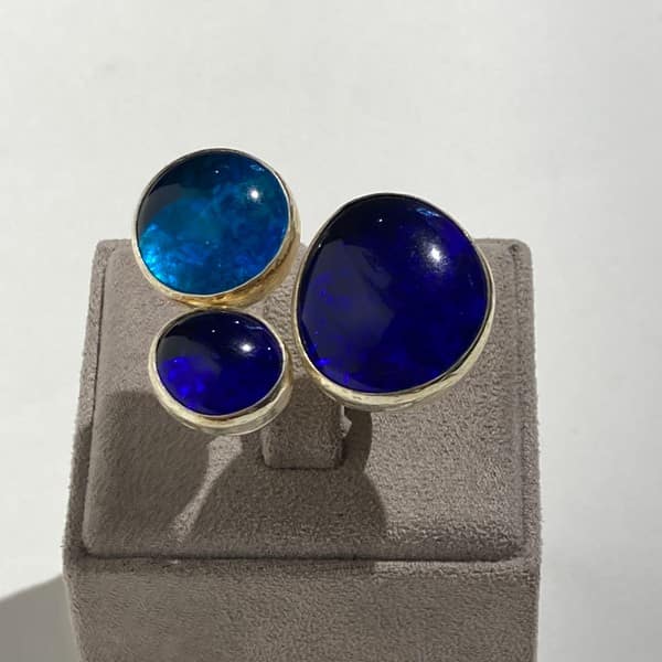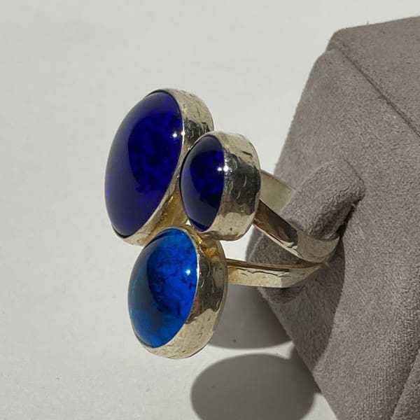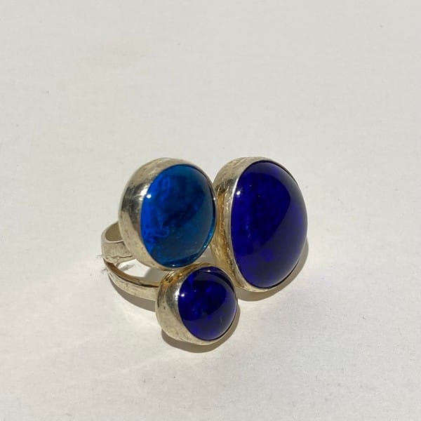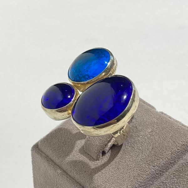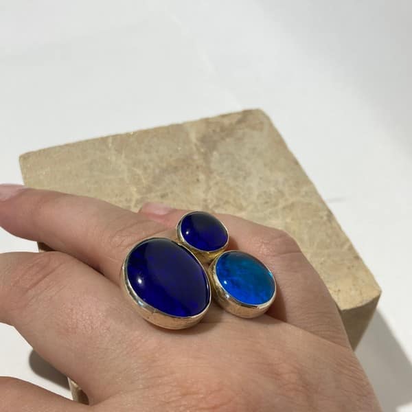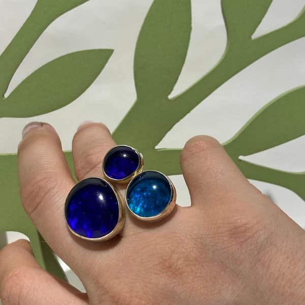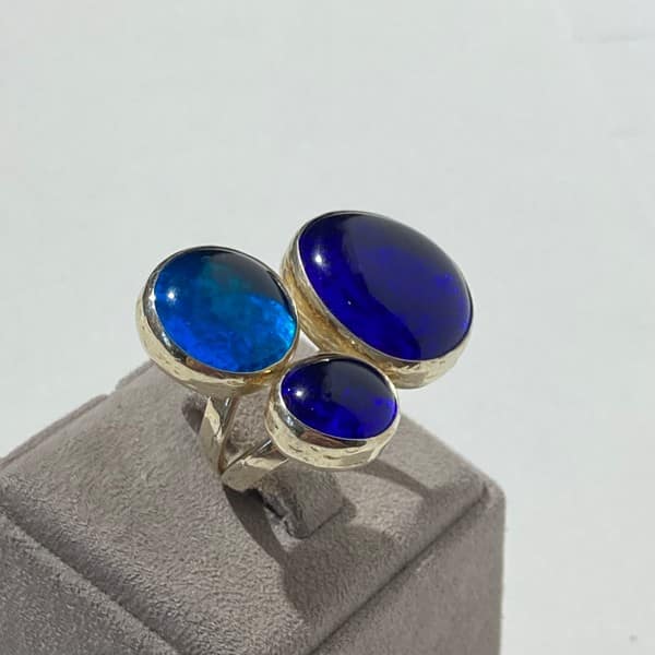 Pirinç üzeri gümüş kaplama tasarım Üçlü Cam Yüzük (29×34 mm)