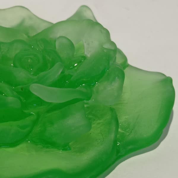 Yeşil renkli bu eserin çapı: 7 cm ve yüksekliği yaklaşık 1,5 cm dir.